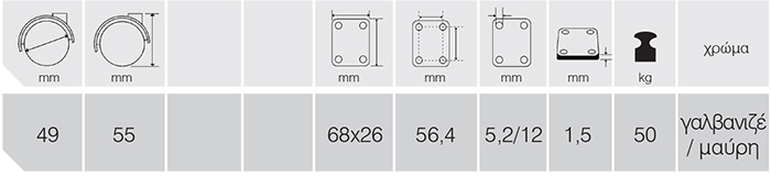 Ρόδα σταθερή Φ49 mm με πέλμα 68 x 26 mm, γαλβανιζέ/μαύρη
