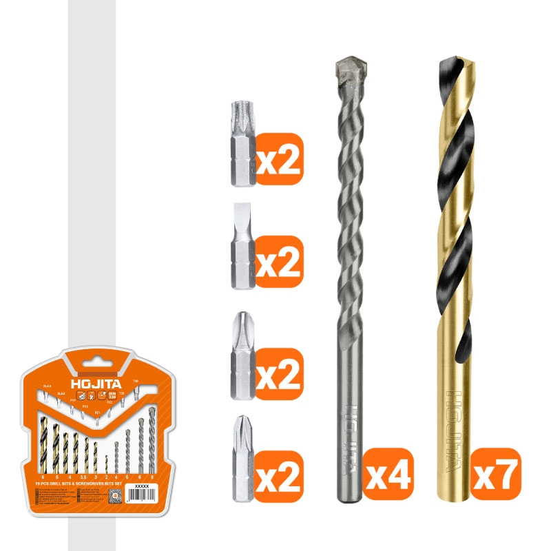 Τρυπάνια μπετού και σιδήρου Hojita HSS + μύτες σετ 19τμχ.
