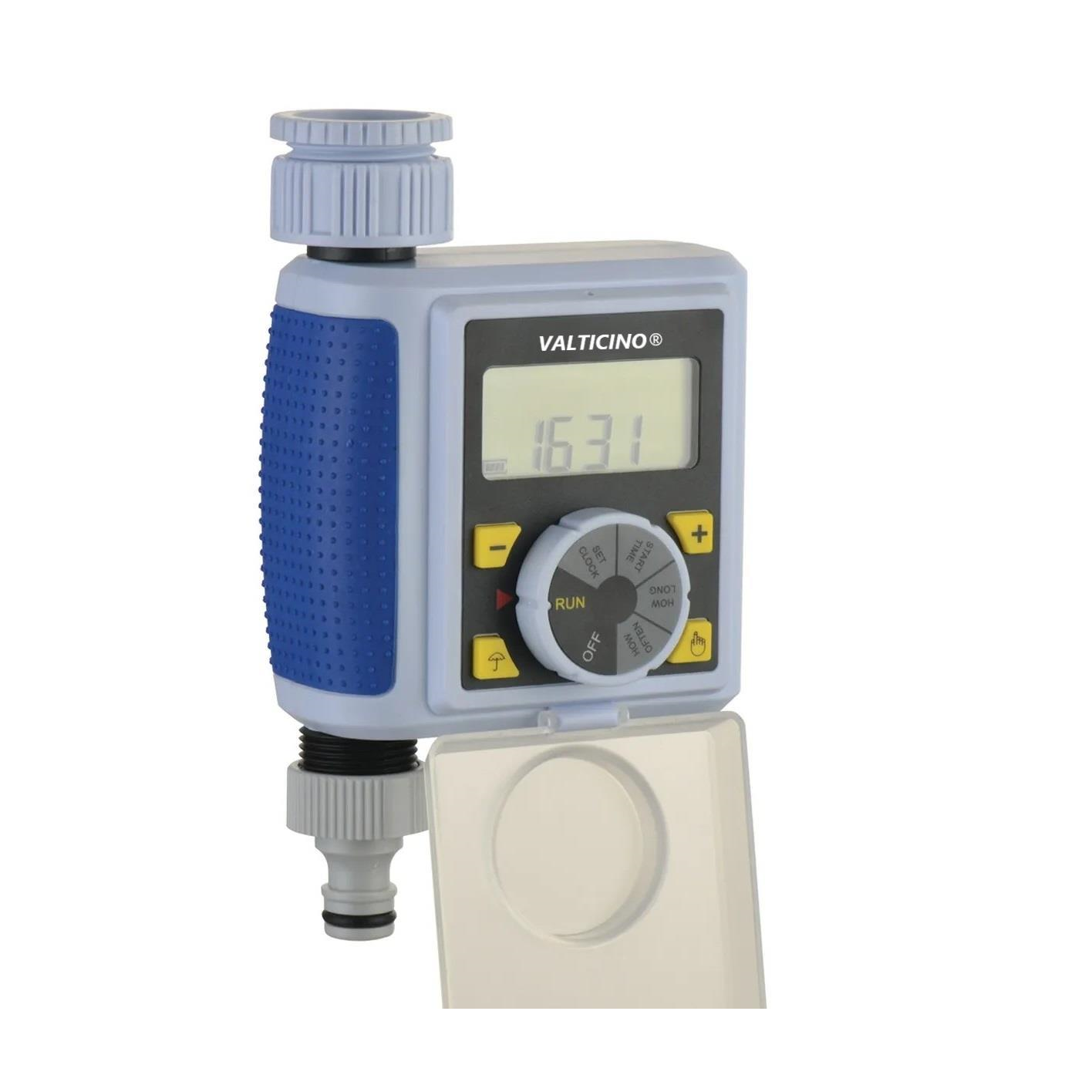 Προγραμματιστής με ενσωματωμένη ηλεκτροβάνα και υψηλής ποιότητας μεγάλη οθόνη ενδείξεων. Προγραμματιζόμενο χειροκίνητο πότισμα από 1 - 240 λεπτά. Προγραμματιζόμενη διάρκεια άρδευσης σε δευτερόλεπτα από 5 - 55 & σε λεπτά από 1 - 360. Η συχνότητα έναρξης ποτίσματος προγραμματίζεται Κατάλληλος & για άρδευση σε μπαλκόνι, κήπο & σε συστήματα υδρονέφωσης - δροσισμού με την λειτουργία δευτερολέπτων. Αναβολή προγραμματισμένου ποτίσματος για 24, 48, 72 Ώρες σε περίπτωση βροχής. Πίεση λειτουργίας 0.5 έως 8 Bar. Λειτουργεί με 2 Χ ΑΑ αλκαλικές μπαταρίες (δεν περιλαμβάνονται) Εγγύηση 2 ετών