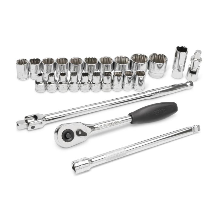 Κασετίνα καρυδάκια 25τεμ. 1/2" πολύγωνα. Περιέχει: 1 - Καστάνια ταχείας απεμπλοκής 20 - Καρυδάκια πολύγωνα 8, 9, 10, 11, 12, 13, 14, 15, 16, 17, 18, 19, 20, 21, 22, 23, 24, 27, 30, 32 mm 1 - Spark Plug Socket 21 mm 3 - Εξαρτήματα Προέκταση 10” Πολύσπαστο Μανέλα.