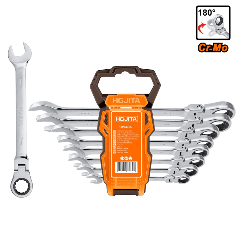 Γερμανοπολύγωνα κλειδιά καστανιας, σπαστή κεφαλή σετ 8τεμ. 8mm, 10mm, 12mm, 13mm, 14mm, 15mm, 17mm, 19mm