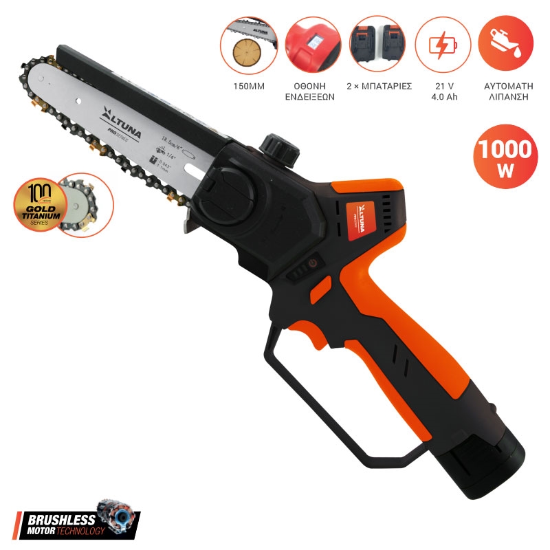 Επαγγελματικό αλυσοπρίονο μπαταρίας Altuna 25,2V AB152 - 2 x μπαταρίες λιθίου 25.2V - 4.0 Ah
