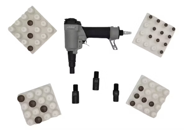 Δυνατό, ελαφρύ και εύχρηστο ειδικό εργαλείο για το κάρφωμα διακοσμητικών καρφιών (καμπαρά). Το συγκεκριμένο εργαλείο είναι ιδανικό για την ταπετσαρία και την διακοσμητική, μιάς και αλλάζοντας τα ρύγχη και τις βάσεις matrix, μπορεί να καρφώσει καμπαράδες μεγαλύτερων διαμέτρων και σχημάτων.