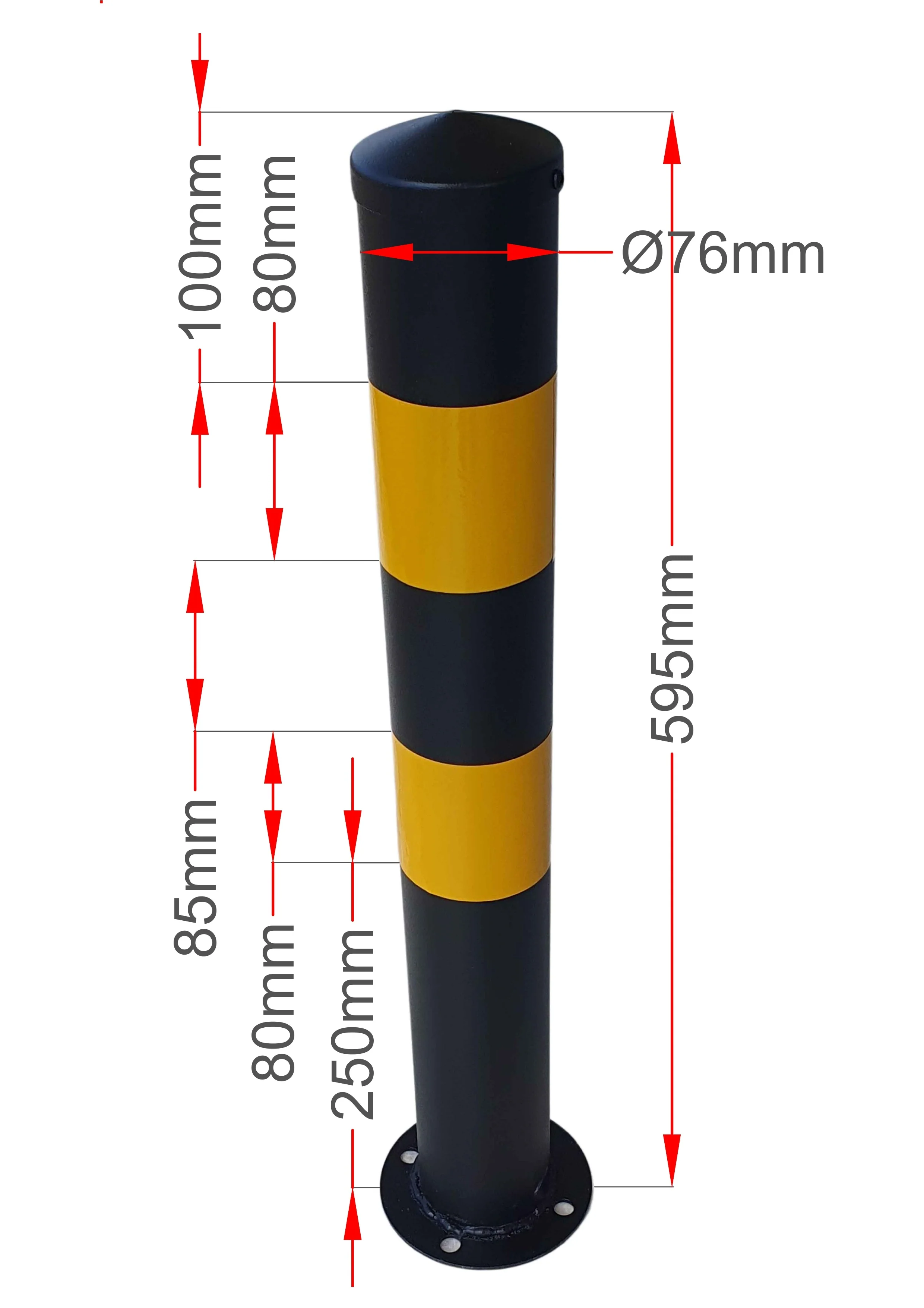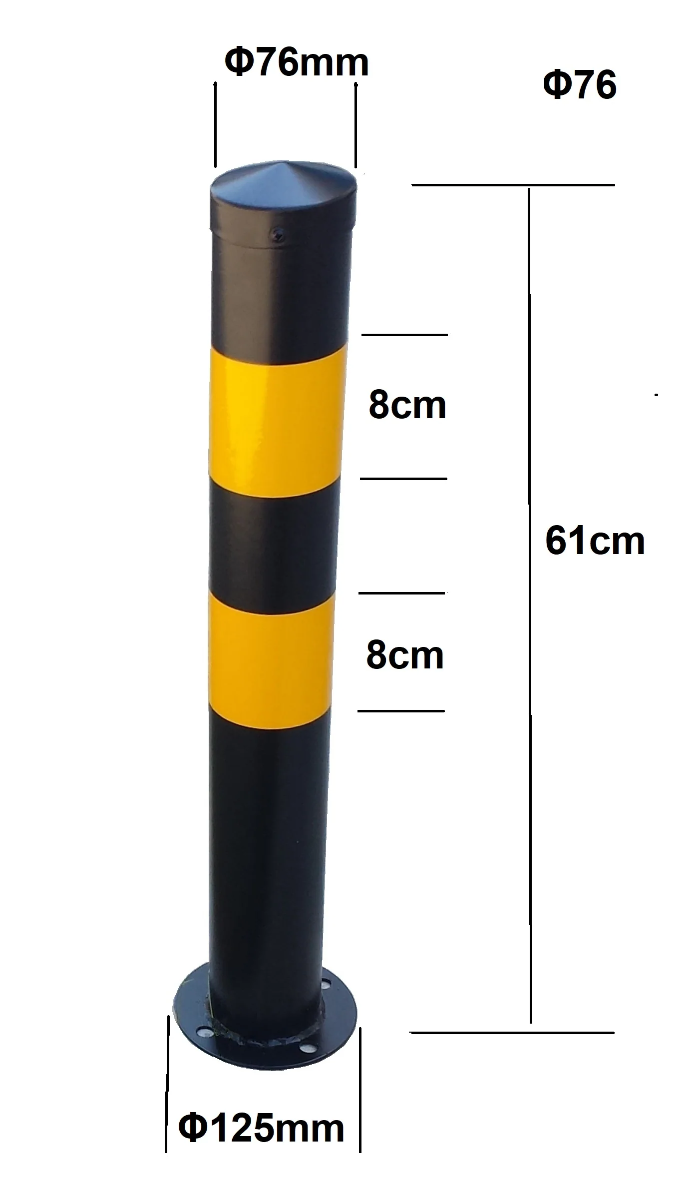 Το μεταλλικό κολωνάκι Φ76 x 600 mm με κώνο είναι πρακτικό και οικονομικό. Πακτώνεται στο έδαφος και είναι κατάλληλο για μόνιμη εγκατάσταση.